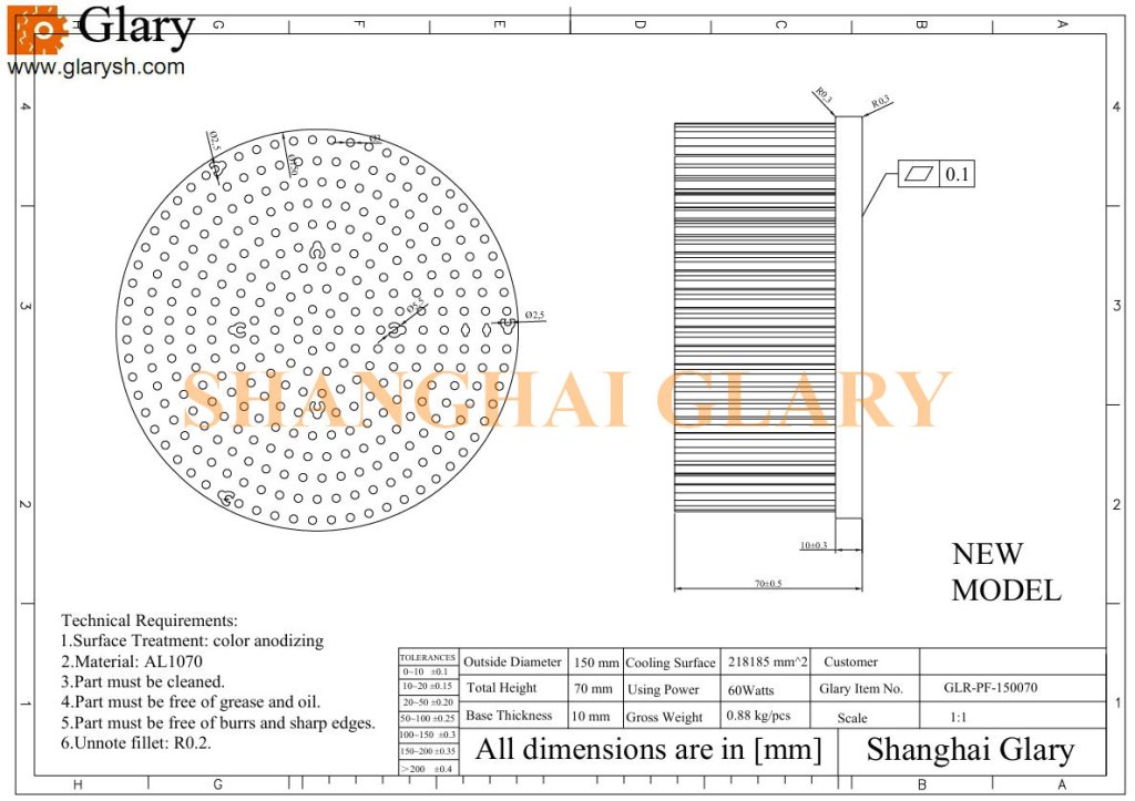 Glary offers standard heat sinks with round and comb designs. They come with different dimensions for your selection. We support all customizations for you.