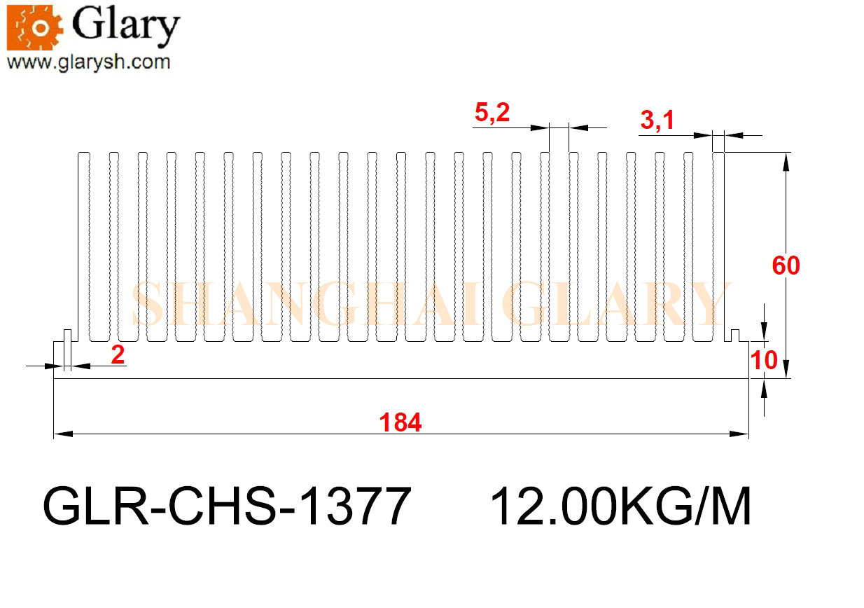 GLR-CHS-1377 184mm extrusion aluminum heatsink