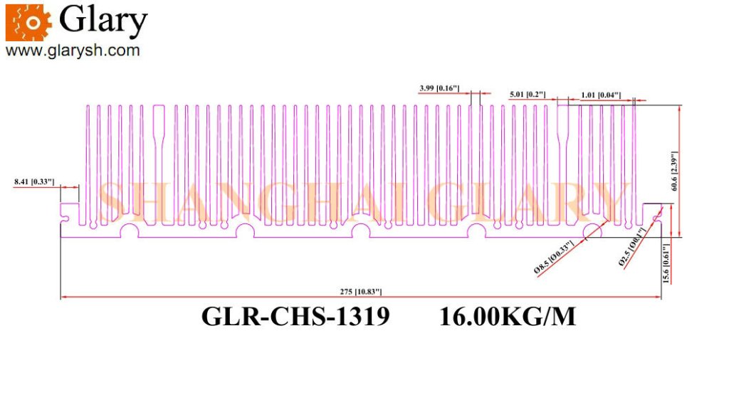 275mm 10.83″ aluminum heatsink